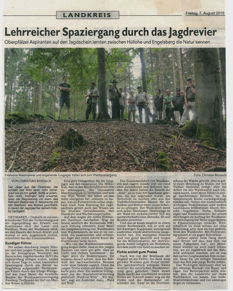 Der eigene Jagdschein – ganz egal ob Sie in einer Jägerfamilie groß geworden sind oder bisher keinerlei Berührung mit der Jagd hatten, es Sie aber schon immer gereizt hat … Bei uns in der Kreisgruppe Neumarkt sind Sie richtig aufgehoben, um das grüne Abitur anzugehen! Seit vielen Jahren bilden wir sehr erfolgreich Jungjäger/-innen in unseren Räumen und auf unserem eigenen Schießplatz aus und begleiten Sie kompetent bis zur Jägerprüfung. Moderne, zeitgemäße Ausbildungsmethoden und die Aufnahme in eine funktionierende Jägerkameradschaft garantieren Ihnen größtmöglichen Erfolg. Eine fundierte theoretische und praxisorientierte Ausbildung, natürlich auch vor Ort in Feld und Wald, sind die Garanten Ihres zukünftigen Jägerlebens.
